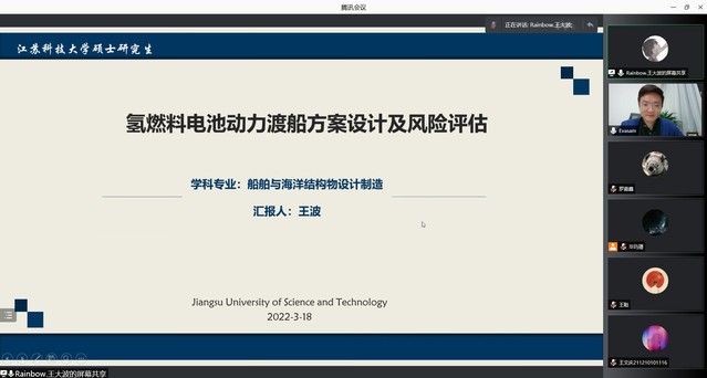 江苏科技大学研究生王波就氢燃料电池动力船舶的发展现状及关键技术、日常科研和学术的使用技巧进行了详细的介绍,同时分享了在内蒙古研支团的支教经历,使同学们感受到青春的力量和色彩。