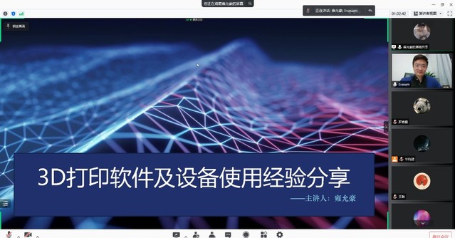 雍允豪同学就3D打印软件以及打印设备(PLA和树脂)使用经验进行分享。他就工作站现有的两种打印设备分别进行介绍和使用经验分享,现场对模型进行分析和软件切片处理,介绍软件中各个数据的调整会对打印设备和成品产生的影响。