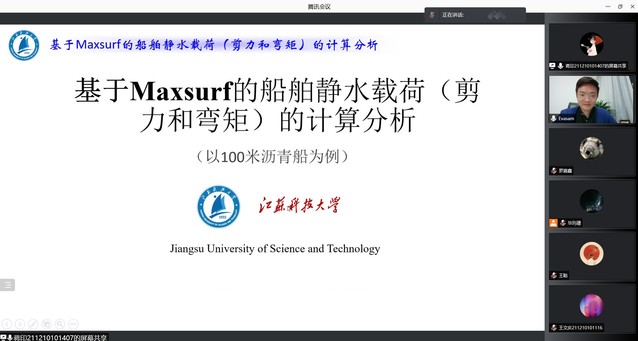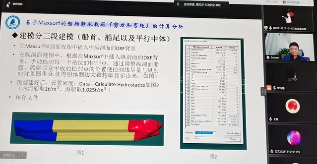 蒋印根据MaxsurfPro、HydromaxPro软件使用经验,讲解全船静水剪力以及弯矩数值计算相关知识。他结合现有整船数据处理后导入软件,逐步介绍软件计算的注意事项,让同学们对船舶所受的载荷以及结构响应有了进一步的了解。