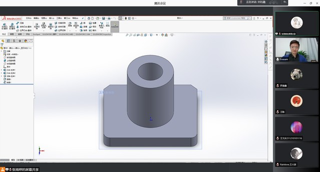 张雨婷同学结合SolidWorks软件的使用经验,分享了三维建模相关知识,并结合实际建模过程进行了现场操作演示。她表示“多做多练、不懂就问、不会就学”是她快速学习软件的有效方法。