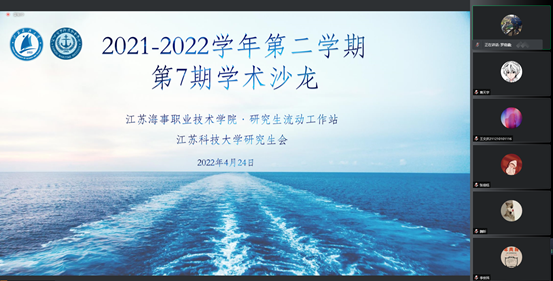 2022年4月24日晚,我院研究生流动工作站线上举办本学期第7期学术沙龙,活动由工作站罗嘉鑫同学主持。研究生流动工作站指导教师沈中祥、江苏科技大学、江苏海洋大学硕士研究生及工作站全体学生参加活动。