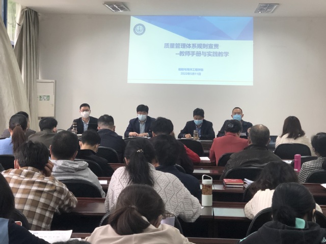 2022年05月11日下午,在敏行楼203会议室,船舶学院组织全体教职员工召开了《质量管理体系规则-教师手册与实践教学》宣贯培训会。学院党政班子和全体教职工参加本次会议,党总支书记宋雅兵主持会议,副院长杜训柏做体系文件宣贯。