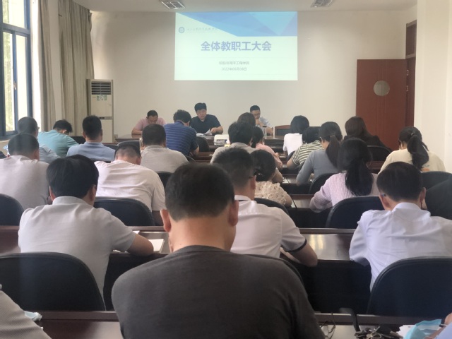 2022年06月08日下午,在敏行楼203会议室,船舶学院组织全体教职员工召开了教职工大会。学院党政班子和全体教职工参加本次会议,党总支书记宋雅兵主持会议。