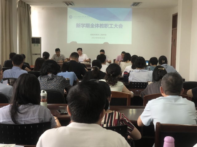 8月26日下午14:00,船舶学院在敏行楼203会议室组织召开新学期教职工大会。学院全体教职工参加会议,会议由宋雅兵主持。
