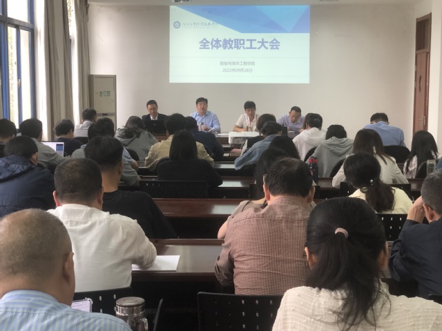 9月28日下午14:00,船舶学院在敏行楼203会议室召开了全体教职工会议。学院全体教职工参加会议,党总支书记宋雅兵主持。