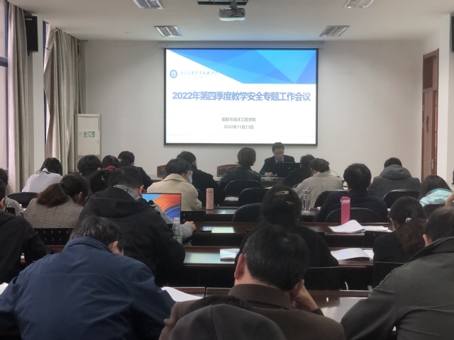 11月23日下午15:30,船舶学院在敏行楼203会议室召开了2022年第四季度教学安全专题工作会议。会议主要开展质量管理体系规则宣贯和实践教学安全培训。学院全体教职工参加会议,副院长杜训柏主持。