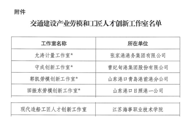 由船舶与海洋工程学院申报,中国海员建设工会全国委员会评审,张强勇老师牵头的“现代造船工匠人才创新工作室”入选全国50个创新工作室名单,我校也是全国唯一入选的高职院校。