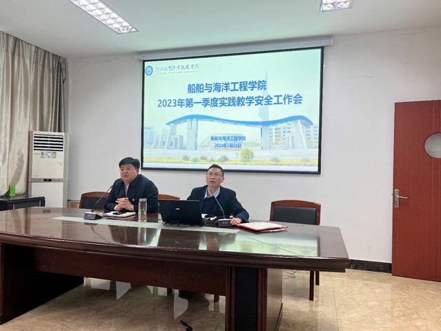 2023年3月23日下午,船舶与海洋工程学院在大会议室召开2023年第一季度实践教学安全工作会,全体实训教师参加会议,会议由杜训柏副院长主持。