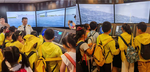 在航海模拟器中心,同学们体验了船舶驾驶。指导老师介绍了船舶驾驶台航行设备的各个功能、操作步骤,以及船舶在大海上航行的基本知识,随后,同学们在驾驶台上“乘风破浪”,沉浸式感受了舰船虚拟与现实的逼真体验,过了一把船长瘾。