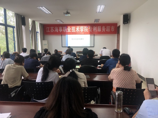 会上,学校科技处朱迎新老师和南京瑞弘专利商标事务所许海洲老师给教师开展专利相关的政策宣讲和专利撰写行文要点的介绍。