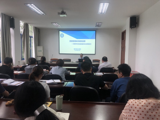 随后,杜训柏开展质量管理体系规则宣贯,重点宣讲了《高等学校实验室消防安全管理规范》主要内容。