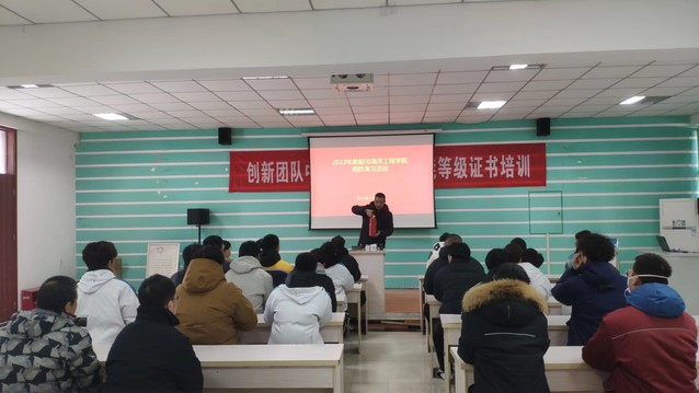 2023年12月21日上午,船舶与海洋工程学院在焊接实训中心组织消防演习,金工工艺实训中心8名教师和焊接实训中心上课的学生参加演习活动。