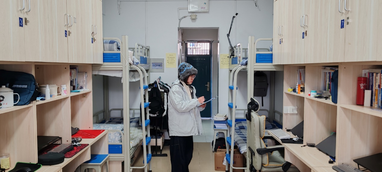 为进一步加强学生寝室的安全管理,强化学生的安全责任意识,消除学生寝室安全隐患,营造安全、文明、卫生的寝室环境,学院于2024年11月下旬分不同条线(班主任、辅导员、军管会)每周定期开展了寝室内务安全排查及卫生检查。