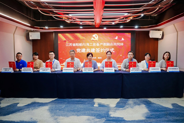 招商局金陵船舶(南京)有限公司、江苏科技大学、江苏海事职业技术学院、江苏海洋大学、江苏省无锡交通高等职业技术学校、南通中远海运船务工程有限公司(启东中远海运海洋工程有限公司)、扬州中远海运重工有限公司、新大洋造船有限公司和江苏新扬子造船有限公司等九家单位代表共同签署了党建共建协议。
