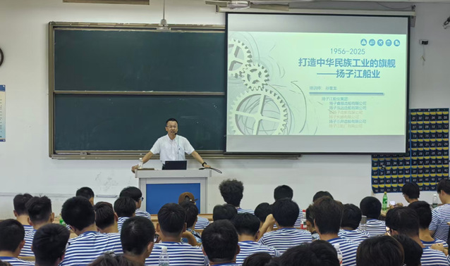 2025年10月11日,竞秀楼202教室座无虚席,一场聚焦“民族造船工业发展与现代造船技艺”的专题讲座在此拉开帷幕。本次“大国工匠进校园”活动特邀扬子江船业集团首席质量官(CQO)、集团认证中级内训师孙雪龙主讲,他以26年船舶制造行业经验与22年质量管理工作积淀为基石,为在场师生打开了一扇了解中国造船业从“跟跑”到“领跑”的全景窗口。