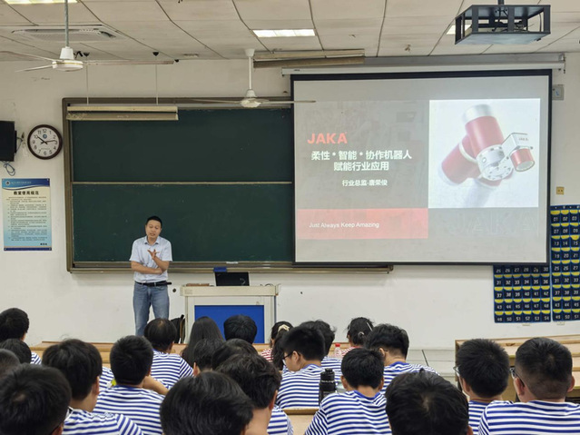 汇报现场,JAKA公司专家唐荣俊聚焦智能焊接前沿领域,结合汽车制造、航空航天等典型应用场景,详细拆解了工业机器人在高精度焊接中的技术突破,从焊缝跟踪算法优化到多机器人协同作业流程,用生动案例诠释了智能技术如何破解传统焊接效率低、精度差的行业痛点。南京高精传动设备制造集团有限公司专家李庆东围绕机械制造工艺研发展开分享,从材料选型、加工工艺优化到产品性能测试,系统拆解了技术创新从实验室走向产业落地的全流程,强调了工艺细节对产品质量的决定性作用。南京高精船用设备有限公司专家吉青山则以船舶推进器为核心,深入浅出地讲解了定距桨、调距桨、全回转推进器及侧推器的结构原理,结合公司在该领域的技术成果,展现了核心零部件制造的技术魅力。此外,北京精雕科技集团有限公司王鹏瑶专家从行业发展视角出发,系统分析了数控机床的技术演进与未来趋势,为新生明晰了专业学习的重点方向与行业机遇。
