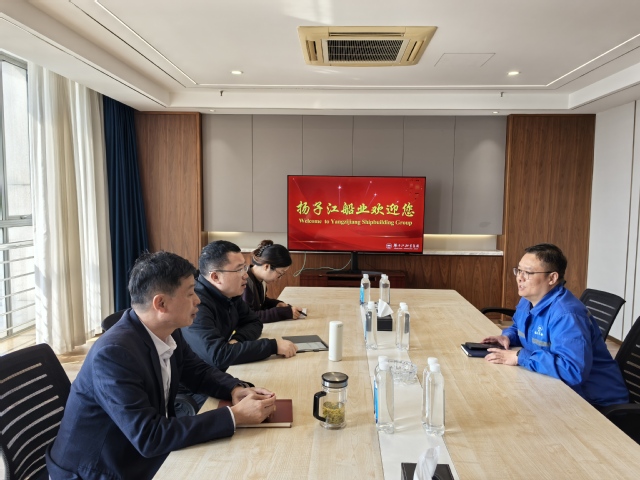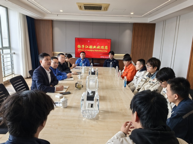 2025年11月11日,江苏海事职业技术学院船舶与智能制造学院党总支副书记戴雪头带队,副院长赵宏权、学术办主任方露、辅导员李宇萌一行,专程赴江苏新扬子造船有限公司,看望慰问正在该企业参与产教融合实践的32名学生,并就学生实习情况、校企协同育人机制优化、深化产教融合等议题进行深入调研。