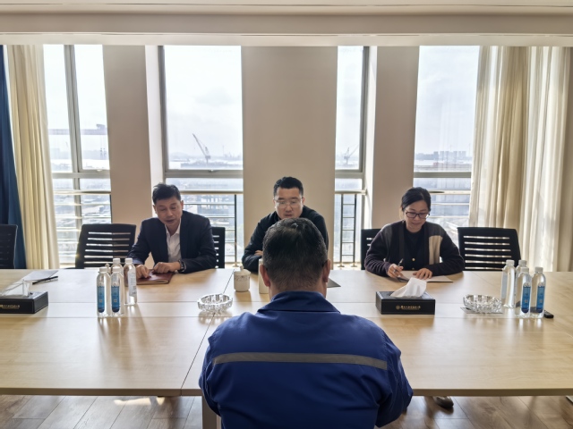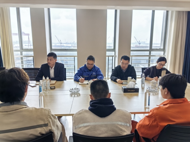 为切实掌握实习学生的实践进展、思想动态与实际需求,戴雪头副书记一行抵达新扬子造船有限公司后,与公司人力资源负责人顾经理及10名实习学生代表进行了面对面的交流座谈。座谈中,每位实习学生逐一汇报了在各自岗位上的实习内容、知识应用与技能提升的感悟、取得的阶段性成果以及实习生活中的收获与体会。同学们分享了将课堂所学知识应用于生产实践中的深刻感受,坦诚交流了在实践中遇到的操作难题及生活方面的具体需求,也就未来的职业发展方向进行了明确规划。