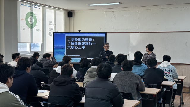 本次研修深度融合了校际合作与行业洞察,为学生职业发展规划提供了国际视角。在木浦科学大学的专题讲座中,崔教授详细介绍了韩国为保持造船业竞争力而实施的开放型人才政策,以及面向未来提出的以“绿色船舶”和“智能造船”为核心的产业长期规划。这些前沿理念,呼应了全球海事产业的发展趋势,为同学们未来的专业学习与技术创新指明了方向。
