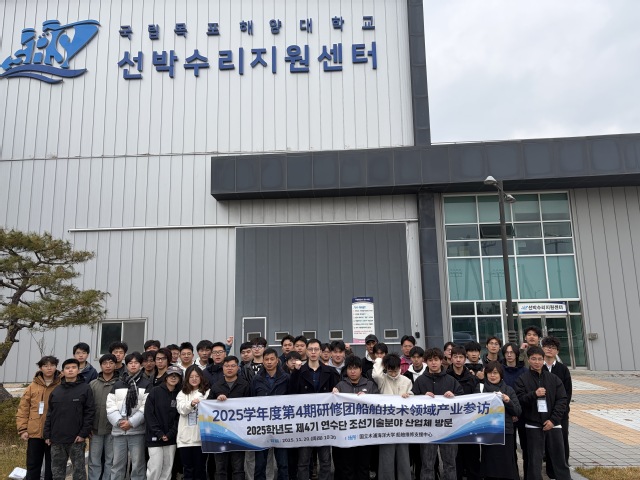 此外,研学团组还参访了木浦市船舶维修支援中心,目睹了韩国国产大型五轴加工中心、大型卧式立式机床、工业3D打印机、工业机器人等先进制造设备的运行。这些高精尖装备展现了韩国现代船舶制造与维修领域的智能化、数字化水平,拓宽了同学们对行业技术前沿的认知视野。