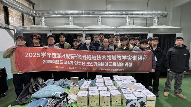 本次研学的专业核心环节设在木浦科学大学船舶焊接实训中心。在世翰大学的精心安排下,崔教授为同学们系统讲解了韩国造船业的现状、发展趋势及面临的挑战,并重点剖析了大型船舶建造的十大核心工艺。他结合韩国在全球造船市场的地位,阐述了技术革新与工艺优化在保持产业竞争力中的关键作用。