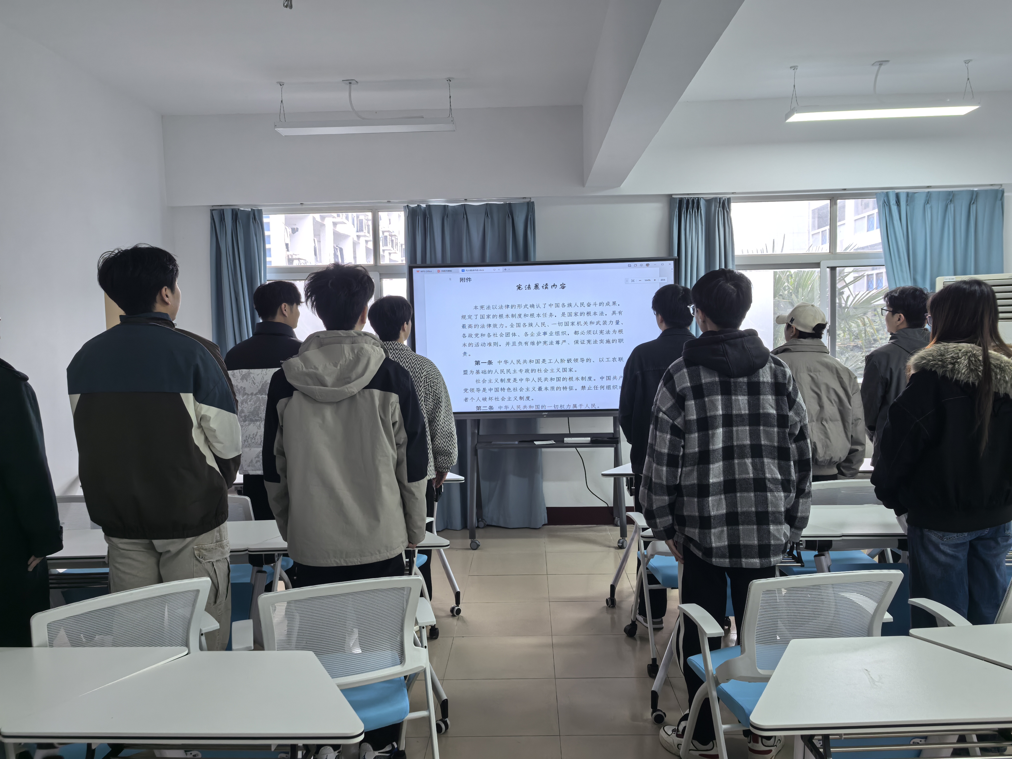 活动期间,同学们通过集中学习、同步跟读等形式,于上午10时起共同收看、参与了教育部全国教育系统主会场的“宪法晨读”环节,共同感受宪法的庄严与权威。本次活动中,学院充分发挥党建引领作用,将集中学习与场景化教育相结合,借助“一站式”学生社区育人平台,有效扩大了活动覆盖面和参与度。
