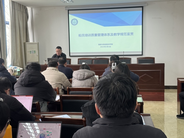 2026年3月4日,船舶与智能制造学院召开新学期全体教职工大会,围绕船员培训质量管理体系运行、内外审整改、日常教学规范及实验实训安全管理等重点内容进行全面部署。学院全体党政领导及教职工参加会议。