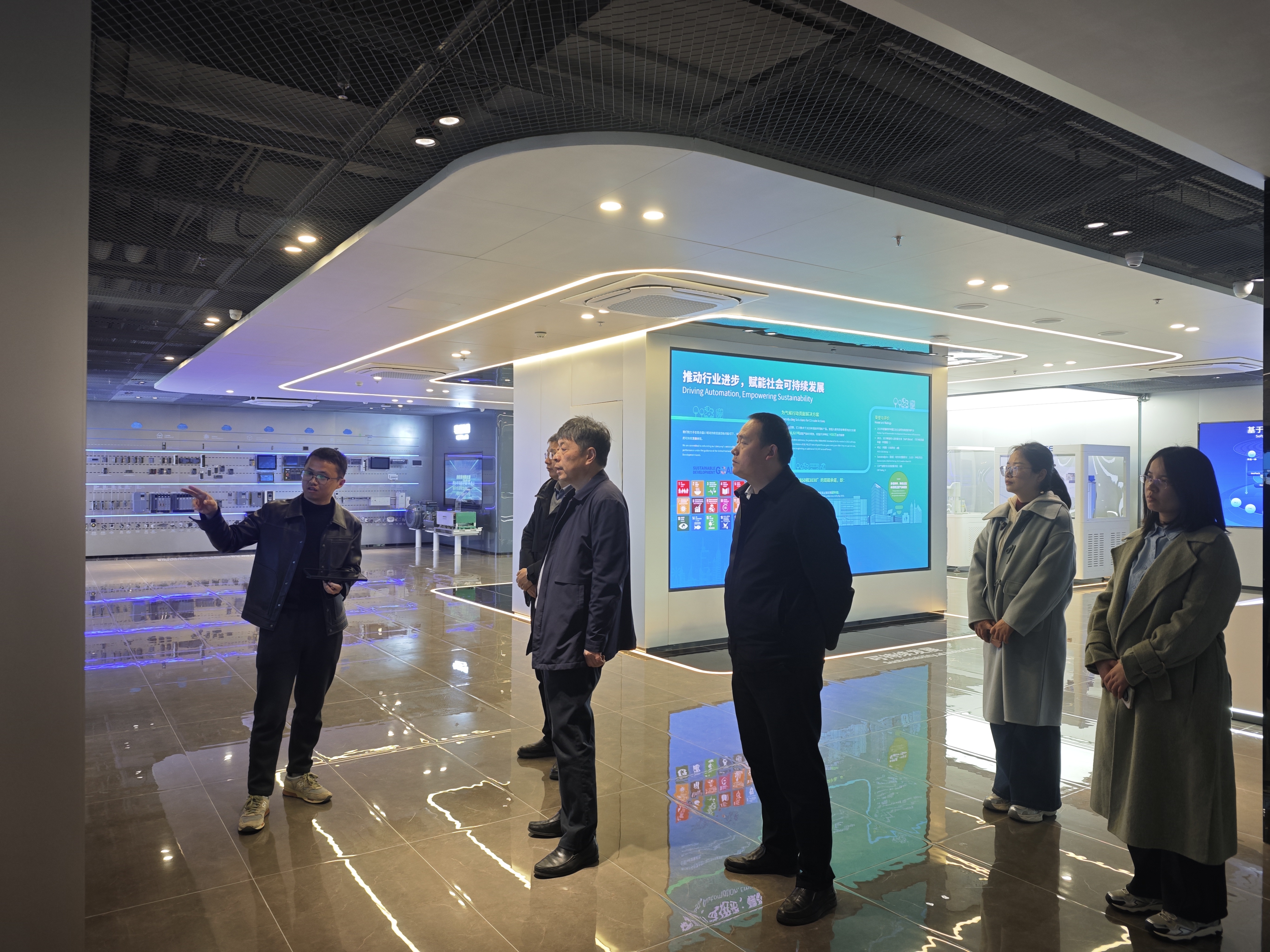 该公司是汇川技术在南京的重要战略基地,专注于工业机器人和高端装备研发与制造。调研期间,田品璐带领一行人员先后参观了汇川技术博物馆和高端制造车间。在博物馆内,大家详细了解了公司的发展历程、核心技术优势及未来发展战略;在丝杠、导轨等高端制造车间,车间主任全程随行讲解,直观介绍了生产流程、产品精度标准及技术应用,让大家深入了解了企业生产运营情况和人才需求导向。